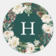 Adesivo Redondo Feriado de Monograma Verde Floral de inverno