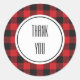 Adesivo Redondo Feriado de Natal da Xadrez de Buffalo Negro Vermel