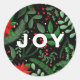 Feche os envelopes dos seus cartões de natal com estilo com estes adesivos festivos. O adesivo apresenta a palavra alegria escrita de branco sobre um padrão desenhado pela mão de verde de Natal. Estes autocolantes também seriam excelentes de usar em favores de festas de férias.
