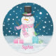 Adesivo Redondo Feriado de Natal Personalizado, Bonito, Rosa Snowm