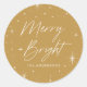 Adicionais modernos de férias com "Feliz e Brilho", mostrados em um script com letra de mão rodeado por uma borda de estrelas brancas contra um fundo dourado. Personalize a feliz e os adesivos brilhantes adicionando o nome da sua família abaixo. Os adesivos funcionam como excelentes de envelope, para selar bolsas favoritas e muito mais!