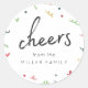 Design de feriado contemporâneo e brincalhão com a palavra "torcida" em uma letra manuscrita rodeada de um confete colorido de feriado festivo.