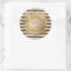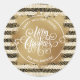 Feliz Natal em letras brancas chic num esplendor de folha de ouro falsa, estes adesivos redondos são personalizados com o Sweet Holiday Wish e o seu nome familiar em letras chic num padrão de rabiscos de ouro sobre listras brancas e pretas. A combinar placas de papel, guardanapos e MAIS designs na nossa loja.