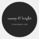 Adesivo Redondo Feriado preto rosa-rosa, Feliz moderna e brilhante
