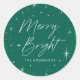 Adicionais modernos de férias com "Feliz e Brilho", mostrados em um script com letra de mão rodeado por uma borda de estrelas brancas contra um fundo verde. Personalize a feliz e os adesivos brilhantes adicionando o nome da sua família abaixo. Os adesivos funcionam como excelentes de envelope, para selar bolsas favoritas e muito mais!