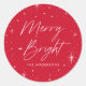 Adicionais modernos de férias com "Feliz e Brilho", mostrados em um script com letra de mão rodeado por uma borda de estrelas brancas contra um fundo vermelho. Personalize a feliz e os adesivos brilhantes adicionando o nome da sua família abaixo. Os adesivos funcionam como excelentes de envelope, para selar bolsas favoritas e muito mais!