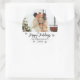 Elegante moderno Script preto-e-branco "Feriados felizes" Família de Script de Caligrafia Feriado de Natal Grande Vinheta Redonda. Apresenta um fundo de flocos de neve fofinhos (neve), nome da família e ano. Excelente para acessórios de correspondência Envelope selos e adesivos para presentes.