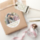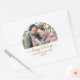 Elegante Script Moderno Dourado e Branco "Feriados Felizes", Caligrafia, Script de Casal Foto Natal, grande palheta redonda. Excelente para acessórios de correspondência Envelope selos e adesivos para presentes.