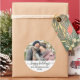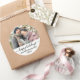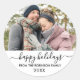 Elegante moderno Script preto-e-branco "Feriados felizes" Casal de caligrafia Foto de Natal Grande Adesivo redondo de Natal. Excelente para acessórios de correspondência Envelope selos e adesivos para presentes.