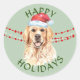 Adesivo Redondo Feriados felizes do Santa Hat para o ouro Retrieve
