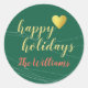Um belo selo verde para a temporada de "Feliz Feriados", com o nome da família... tudo em um estilo de letra manuscrito com a imagem de um pequeno coração de amor