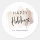 Este adesivo de Natal moderno e na moda apresenta um trendy, falso traço de pincel de ouro rosa e uma elegante tipografia de script manuscrito preto que diz "feriados felizes" em um fundo branco.
