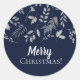 Adesivo Redondo Férias Botânicas de Inverno Azul e Folhas Prateada