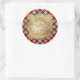 Feliz Natal em letras brancas em chic num esplash de folha de ouro falsa, estes adesivos redondos são personalizados com Férias Doces e o seu nome familiar em letra chic num padrão de xadrez de feriado. A combinar placas de papel, guardanapos e MAIS designs na nossa loja.