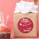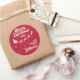 Mostre o quanto você acredita na magia do Natal e do Papai Noel com este adesivo redondo da família de Natal com a silhueta de Papais noeis de trenó em branco com suas renas, voando em uma trilha de estrelas. A legenda no topo lê Feliz Natal em letras brancas manuscritas. O texto é facilmente personalizável com seus desejos, ano e nome da família ou nome comercial. Este adesivo faz o perfeito selo de Natal para desejos familiares ou pode ser usado para decorar seus presentes de Natal