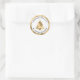 Borda Dourada e Árvore de Natal Feita à Mão com Amor Presente de Natal Personalizado Adesivo Redondo Clássico... Você está fazendo roupas, enfeites ou acessórios artesanais como presentes de Natal este ano? Nosso adesivo/rótulo de presente de Natal exibe uma elegante borda de folha dourada em torno do texto: "Feito à Mão com Amor" e "por Seu Nome". No centro há uma árvore de Natal em folha dourada que combina com a borda de folha. Você pode facilmente alterar seu nome e o nome do produto no modelo de personalização.