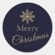 Adicione um toque de elegância às suas correspondências e encomendas de Natal com este lindo adesivo redondo. O fundo azul-marinho profundo é adornado com um floco de neve em dourado polido no topo, simbolizando a beleza serena da época. Abaixo dele, "Feliz Natal" é apresentado de forma elegante em tipografia clássica e letra cursiva, capturando o espírito de tranquilidade e boa vontade. Perfeitos para adicionar um toque sincero aos seus cumprimentos festivos, estes adesivos são uma maneira encantadora de espalhar alegria e calor nesta época de Natal. Use-os para selar envelopes, decorar embrulhos de presentes ou adornar brindes de Natal. Eleve a apresentação das suas festividades com este design cativante e significativo.