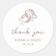 Esses adesivos de casamento ou chá de panela, elegantes, castanhos e brancos apresentam um estilo rústico moderno e minimalista, com roteiro manuscrito que diz "obrigado você" assim como texto clássico. Um par de ferraduras desenhadas à mão é apresentado em uma sutil ilustração, para um olhar atualizado para o casamento do seu país, do oeste ou do tema caubói.