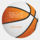 Esses bonitos adesivos de festa de aniversário com tema de basquete são totalmente personalizáveis e apresentam a imagem realista de uma bola de basquete que tem painéis brancos e cor de laranja alternados - personalize com seu texto personalizado - por katz_d_zynes