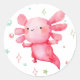 Adesivo Redondo Festa de aniversário Axolotl rosa com aquarela