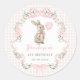 Com um coelho em aquarela caprichoso segurando um balão, fitas cor-de-rosa delicadas, flores e padrão xadrez pastel suave, este adesivo é perfeito para uma celebração doce e boba.