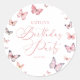 Adesivo Redondo Festa de aniversário de borboleta rosa suave