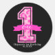 Adesivos de Festa de Aniversário de Um 1 Ano com Estampa de Leopardo Rosa. Personalize para qualquer evento. Itens combinando disponíveis.