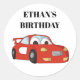 Adesivo Redondo Festa de aniversário do Carro Race Vermelho