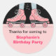 Uma garota engraçada patinando design a rosa e preto faz um adesivo de excelente para favores ou cartas de agradecimento.