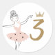 Design de aniversário de meninas com tema de balé adorável apresentando uma doce ilustração de uma bailarina em um tutu dançando em palco em uma rosa claro, prata e paleta dourada.