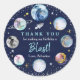 Festa de aniversário Espacial Primeira Viagem Em Torno Do Adesivo Sun Clássico Redondo