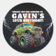 Adesivo Redondo Festa de aniversário Personalizada Monster Truck E