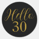 Design elegante de 30 anos em preto e dourado. Este design de tipografia moderna é em preto e dourado chiques. Tem o texto "Olá 30" em tipografia da moda. Este design elegante é perfeito para uma celebração de aniversário de 30 anos inesquecível, e é ideal como selos de envelope de convite e selos de festa. Se precisar de ajuda com personalização, ou para um design personalizado, entre em contato via chat da Zazzle.