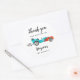 O festa de aniversário favorito do carro de corrida bonito apresenta ilustração do carro vintage azul com chama vermelha. O texto diz: "obrigado-te para correres."