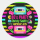 Adesivo Redondo Festa de aniversário Retro Neon 80s