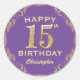 Adesivo Redondo Festa de aniversário Roxo e quadro Glitter Dourado