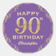 Adesivo Redondo Festa de aniversário Roxo e quadro Glitter Dourado