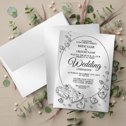 Festa de casamento Silver Hearts Cinza Clássico Redondo Moderno Elegante. Único, bonito, na moda design. Fácil de ser personalizado. O estilo, o tamanho e as cores da fonte podem ser alterados. Itens correspondentes disponíveis.