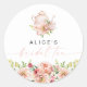 Adesivo Redondo Festa de Chá de Noivado Floral Rosa ALICE Brunch
