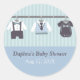 Há algo tão fofo sobre mini roupas de bebê e acessórios! Essas etiquetas decorativas são excelentes para a festa do chá de fraldas com suas roupas de bebê penduradas nas paredes que incluem camisas e shorts de arco inteligente, colete de padrão de diamante e gravata azul de marinho e um criador de bebê com gravata e aparelho de arco falsos. Padrão de listras azuis para o fundo. Personalize facilmente com a mensagem do seu partido.
