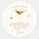 Celebre com estilo com nosso adesivo redondo clássico Espresso Martini Crew! Perfeito para a festa de despedida de solteira, este adesivo chique e divertido foi projetado para unir a noiva e suas amigas com um amor por café e coquetéis. Com um desenho de um copo de martini de espresso elegante e letras em negrito, este adesivo é a maneira definitiva de mostrar sua turma de festa de uma maneira estilosa e divertida.