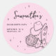 Adesivo Redondo Clássico Festa de Despedida de Solteira Disco Cowgirl Rosa Último Rodeio.