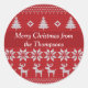 Uma árvore de natais vintages, floco de neve e padrão de suéter argyle de renas em vermelho em volta do seu texto personalizado em um adesivo de favor de festa de feriado que tem um aspecto tricotado. Personalize o seu feriado com estes belos e nostálgicos autocolantes.