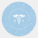 RN Adesivo de Caduceus em azul e branco com texto "Formando Parabéns!". Perfeito para as festas de formatura da escola de enfermagem celebrarem a nova enfermeira!