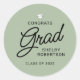 Este elegante adesivo de formando de script apresenta um design verde e preto sábio com a mensagem "Formando de felicidades". Personalizado o adesivo com o nome do formando e do ano.