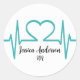 Adesivo redondo clássico de linha de eletrocardiograma de batimento cardíaco. Impressão de batimento cardíaco de eletrocardiograma turquesa, para uma formatura de enfermagem ou medicina, uma prática médica e muito mais! Não apenas é possível alterar as cores da fonte (e o texto, claro), mas também é possível alterar as cores do fundo, o que mudará a cor da linha do batimento cardíaco! Você pode combiná-lo com a cor favorita do seu médico ou enfermeira, ou com as cores da escola, se desejar.
