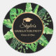Um adesivo de festa de formatura tropical. Excelente para etiquetar favoritos para festas ou selar envelopes. Observe que os detalhes da folha de ouro são simulados.