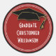 Monograma deste adesivo de temas de graduação e anexe a seus convites para festas de formatura, anúncios de graduação, cartões com fotos de graduação ou obrigado de graduação, correspondência. O adesivo temático de graduação moderna inclui um boné de formatura preto e dourado e borda preta e branca. A cor vermelha de fundo pode ser alterada para corresponder a uma cor escolar ou à sua cor favorita.