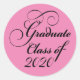 Adesivo elegante de graduação em rosa e preto para anexar a anúncios de graduação, imitações de festa de formatura, salvar a data e outra correspondência em papel de graduação. Perfeito para a classe graduada de 2020. Fonte elegante do estilo de script.