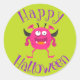 Adesivo Redondo Festa de Halloween, Crianças do Monstro Rosa